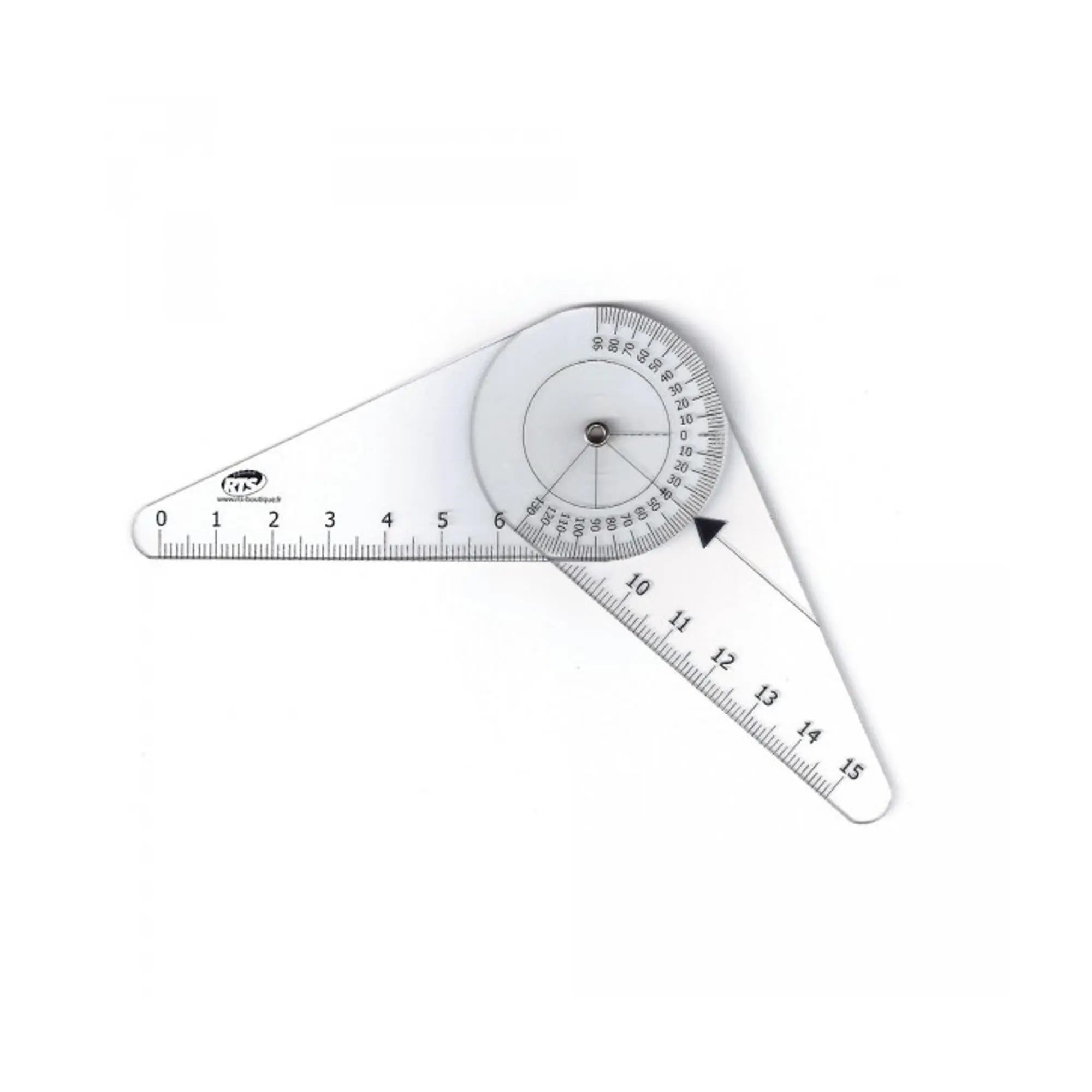 Goniometer with photo-engraved graduations for perfect reproduction and greater precision. Polycarbonate is a material that is very resistant to shocks.
